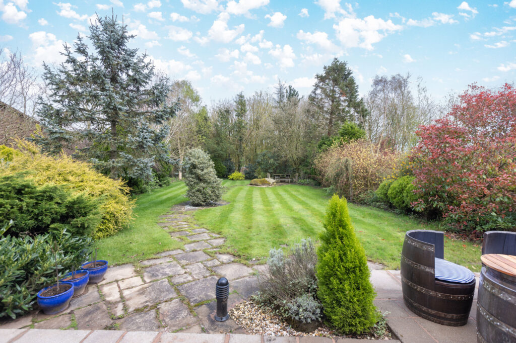 The master bedroom features an en-suite, ensuring luxurious comfort, while the landscaped garden and picturesque courtyard offer a serene outdoor escape, with perfectly planned outdoor patio areas and footpaths with garden artistry. Quality detailed fixtures and fittings, including wooden and stonework flooring, add a touch of refinement to this quiet retreat.