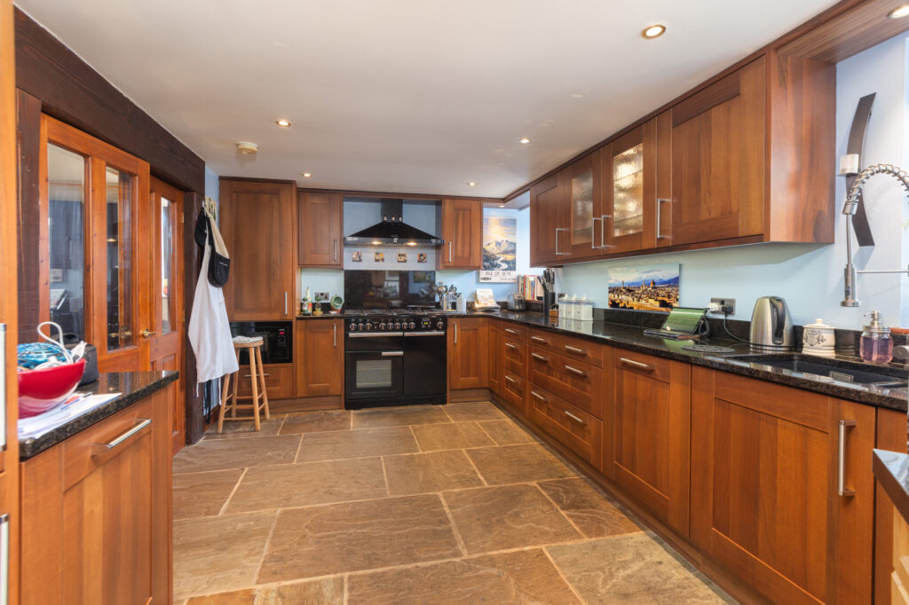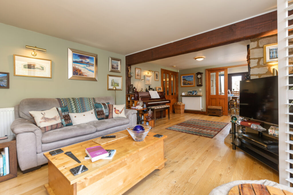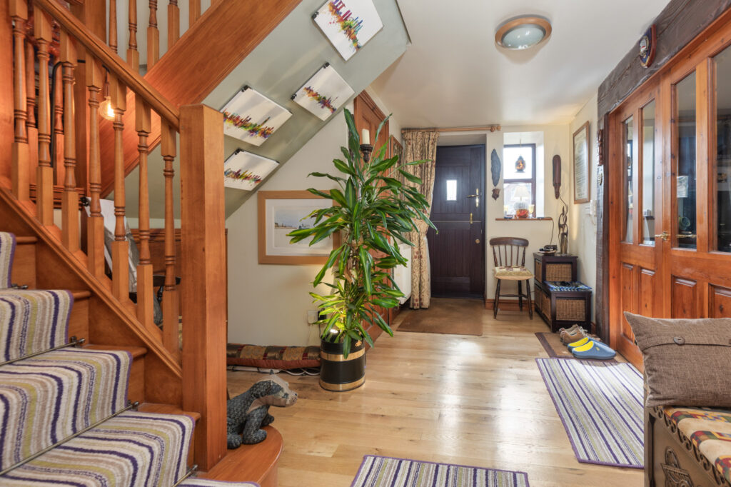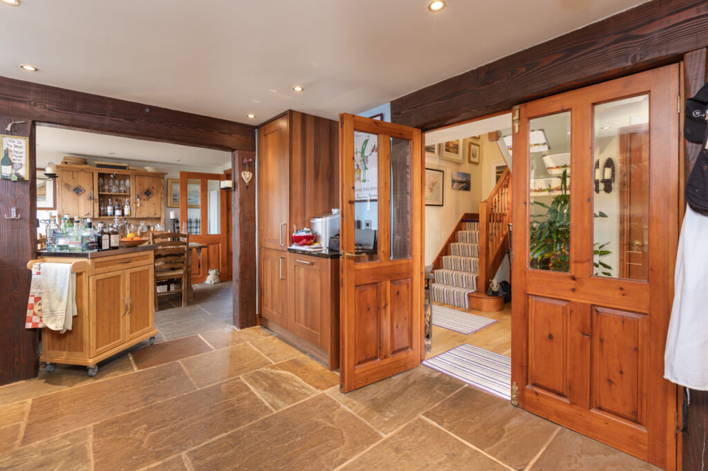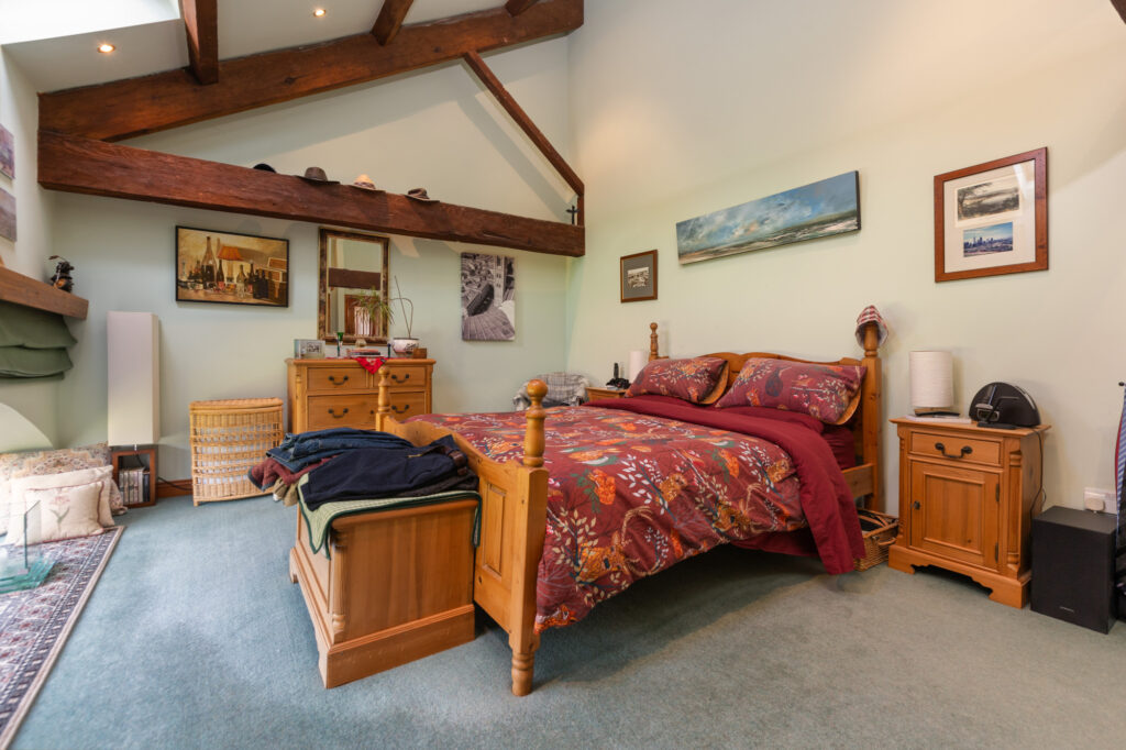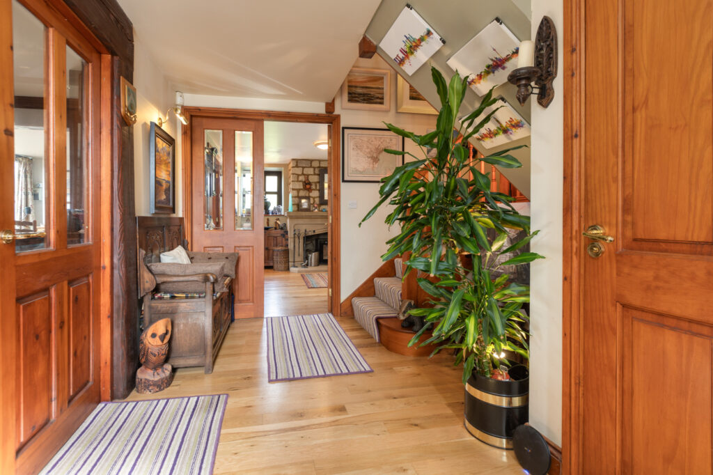 Step inside to discover a tastefully decorated interior adorned with exposed beams and stonework, accentuating the property's timeless appeal. This harmonious and imaginative architectural delight benefits from high ceilings and large, perfectly placed windows to create a light and airy ambiance, while a spectacular fireplace and log burner form the heart of the home, providing a cosy retreat in the colder months.