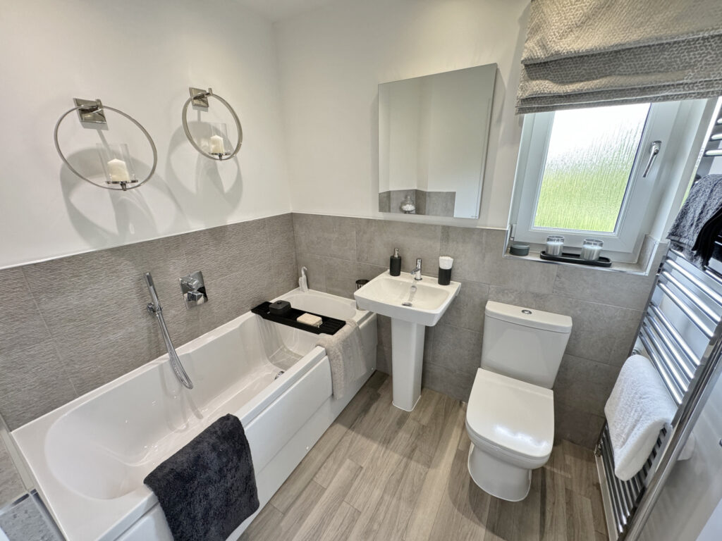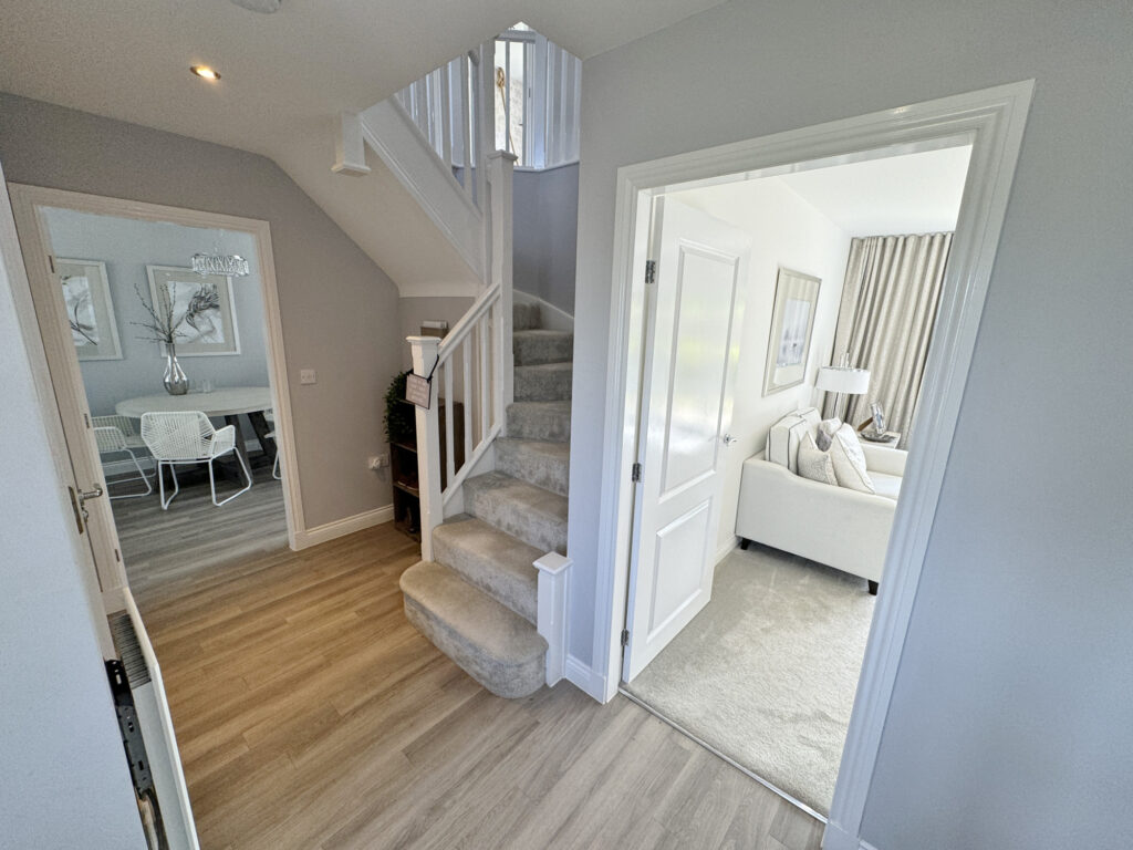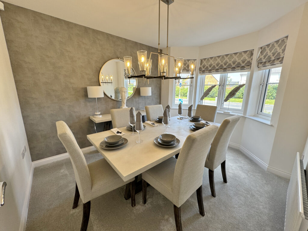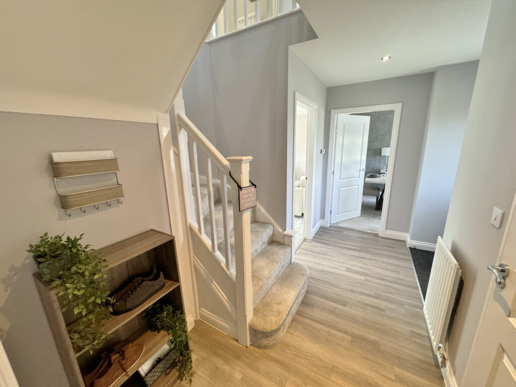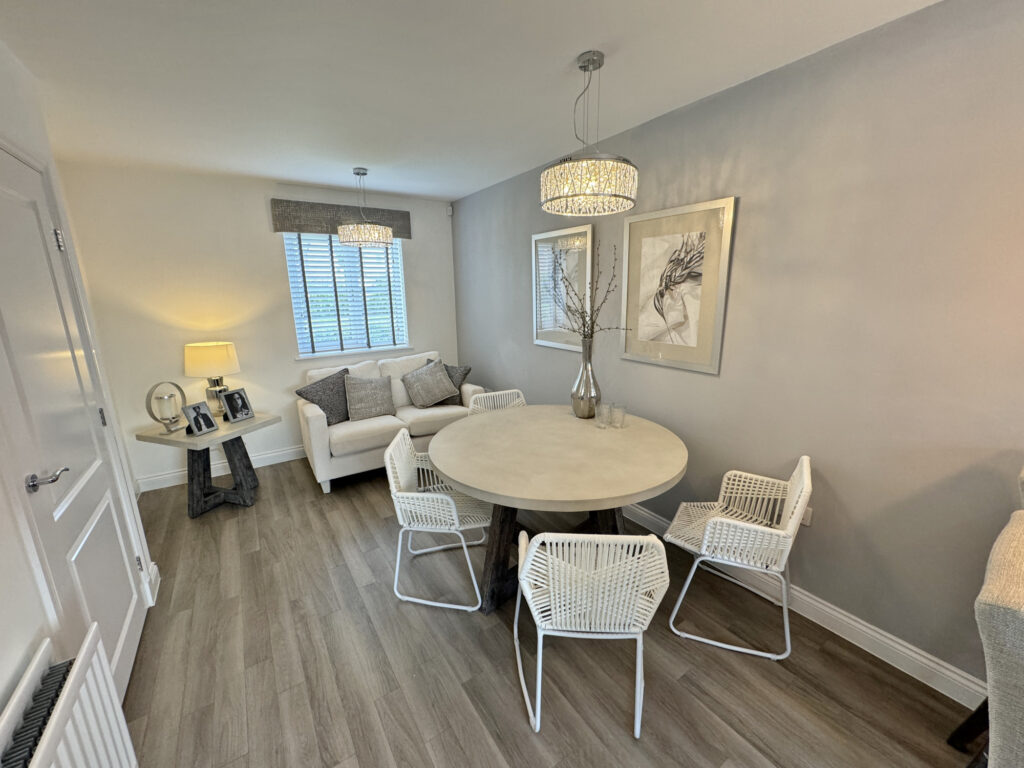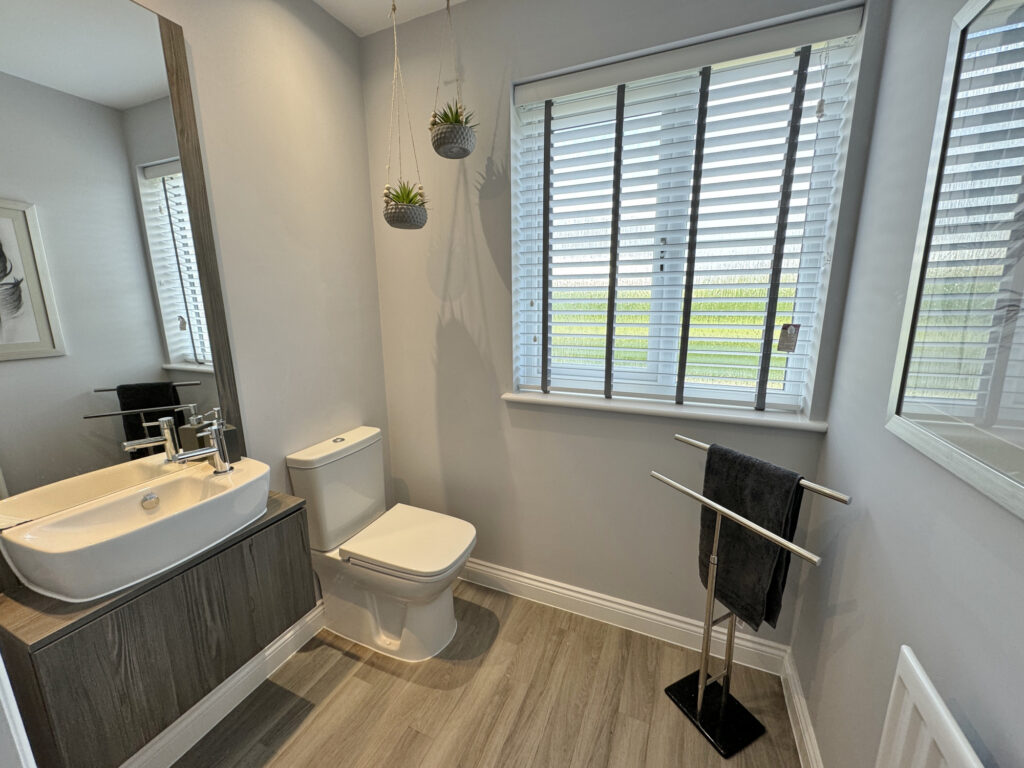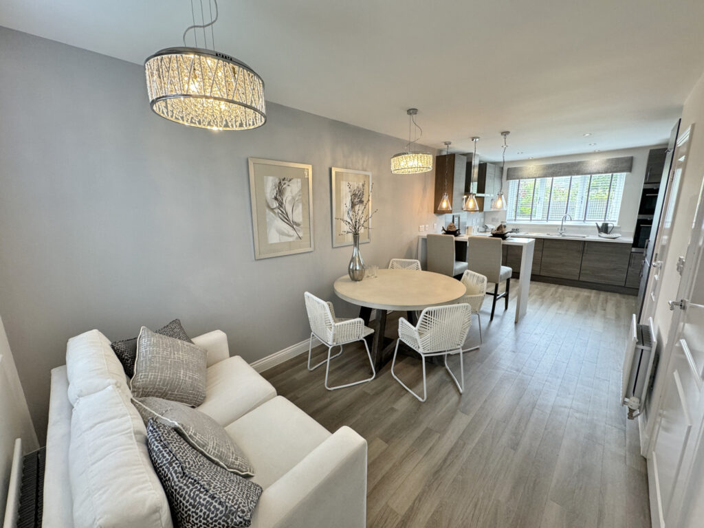 Nestled in a sought-after development, this home is just a stone's throw away from vibrant community centres, offering a variety of amenities and activities for all ages. The property boasts four generously sized bedrooms, providing ample space for relaxation and comfort. As an ex-show home, it features high-quality finishes and contemporary design elements throughout, showcasing the latest in home trends and décor. The welcoming entrance hallway sets the stunning tones that cascades throughout and paves the way to the sublime living areas. A formal lounge is styled beautifully and offers that indoor outdoor living via the double glazed French doors. An open-plan living/dining kitchen creates a seamless flow between the living areas, including a stylish kitchen with top-of-the-line appliances and a dining area. For those who love to entertain then the dining room will be a important factor and will be sure to add that little extra bit of luxury. A handy two piece cloakroom completes the ground floor layout.