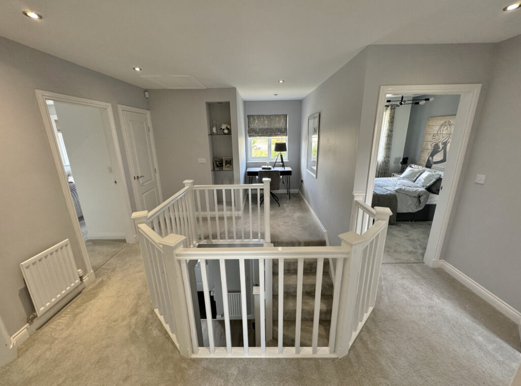 As you ascend the first floor the sumptuous accommodation continues; the galleried landing is the centrepiece giving access to all four bedrooms and also offers an area to utilise as a home office space. The master bedroom includes a luxurious en-suite bathroom and fitted wardrobes, offering a private retreat for homeowners as does bedroom number two. The two additional bedrooms have the use of the stylish and practically arranged three piece bathroom. To the outside the good sized block paved driveway gives homeowners the benefit of off parking for a number of vehicles as well as access to a detached double garage. The rear garden is a beautifully landscaped garden, perfect for outdoor entertaining and family gatherings.