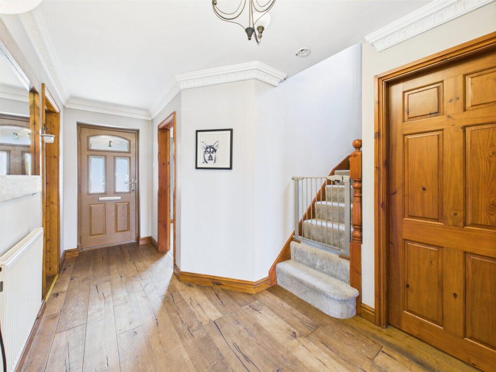 Step inside and you're greeted by a bright and welcoming entrance hallway, setting the tone for the spacious and stylish accommodation that follows. To the rear, a generously sized lounge offers the perfect place to unwind. Feature Inglenook fireplace with log burner framed by windows to each side of the bay, it’s a room filled with warmth and charm. French doors lead directly to the rear garden, extending your living space and inviting the outdoors in. The modern kitchen is well-equipped with a good range of matching wall and base units, solid wood worktops, and plenty of practical storage — ideal for everyday cooking and busy family life. A separate formal dining room to the front offers the perfect space for entertaining or relaxed meals with loved ones. An internal door from the hallway provides direct access to the integral garage, with both an up-and-over front door and a convenient side entrance — offering excellent storage or conversion potential (subject to permissions).