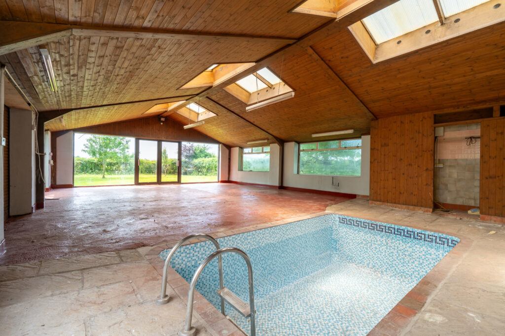 Upon entering the property there are two large reception rooms accessed from the hallway. The Kitchen opens up into one of the living rooms making it perfect for enjoying family time and entertaining. The kitchen features plenty of wall and base storage units with integrated appliances and a large window looking into the pool house. The pool house once held a full sized swimming pool however, has now been redesigned to house a smaller swimming pool and allow for storage. This room is an incredible size and offers rolling doors and French doors opening onto the rear garden. Finishing off the ground floor, there is a utility room split into two rooms allowing for a dedicated utility room and a room for development.