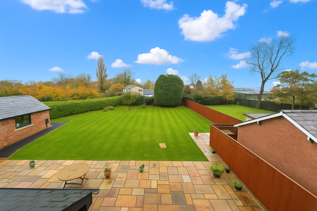 Externally, the rear garden is a true delight — private, not overlooked, and designed for low maintenance. It features a neatly lawned area, a multi-toned Indian stone patio, and even a picturesque apple tree, creating a serene outdoor retreat.
