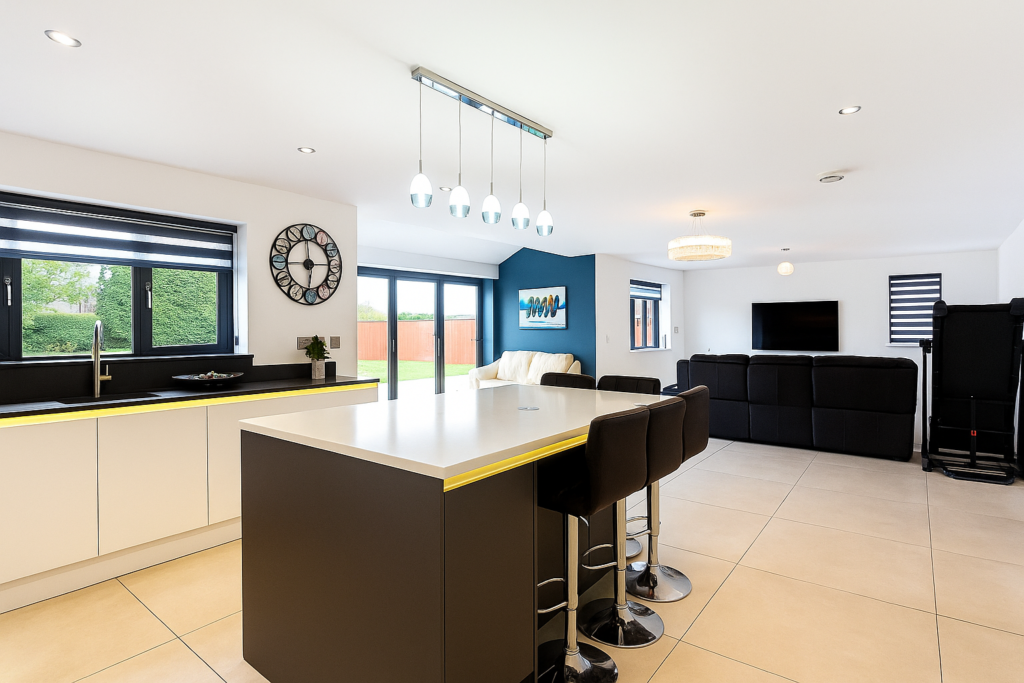 Bi-folding doors open seamlessly onto the rear patio, inviting the outdoors in and providing the perfect setting for entertaining family and friends.