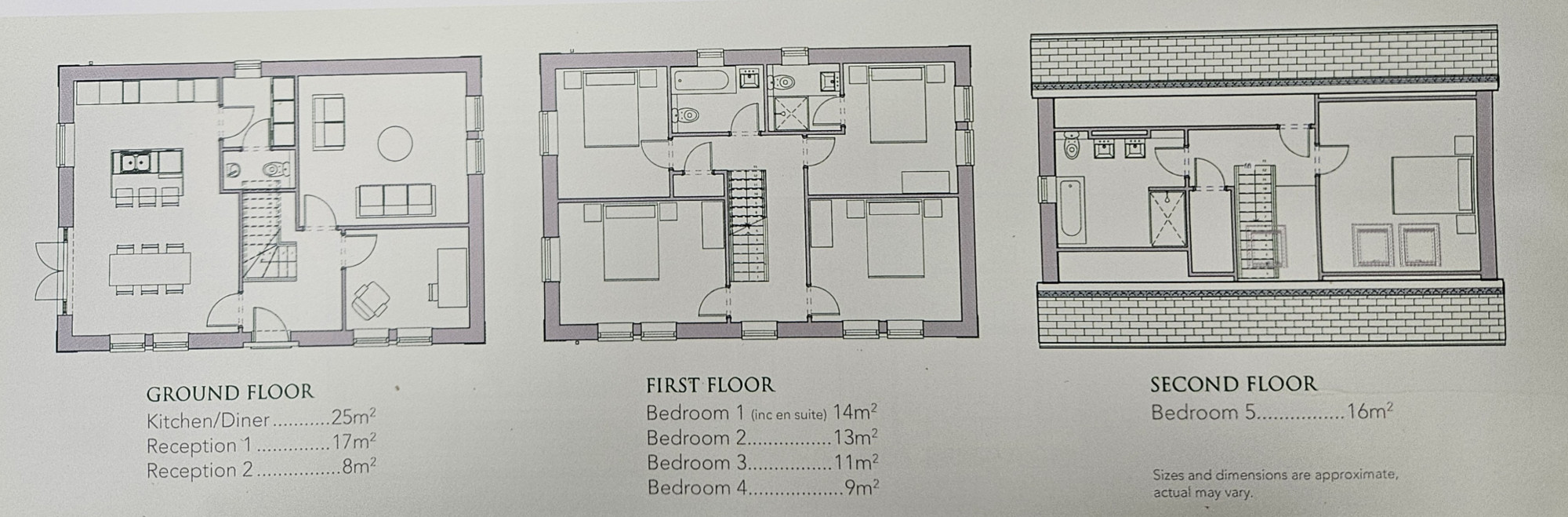 Upstairs offers four generous double bedrooms, one with an en-suite, plus a stylish family bathroom. The top floor is home to a stunning master suite with dressing area and en-suite. Externally, there’s a detached garage and driveway parking.