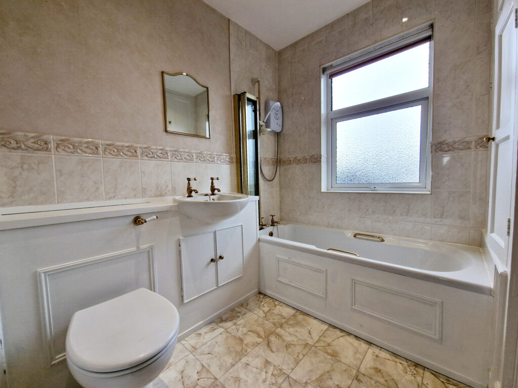 Upstairs, the property features two generously sized double bedrooms, each offering ample storage with built-in wardrobes. Additionally, there is a well-proportioned single bedroom, also equipped with built-in storage solutions.