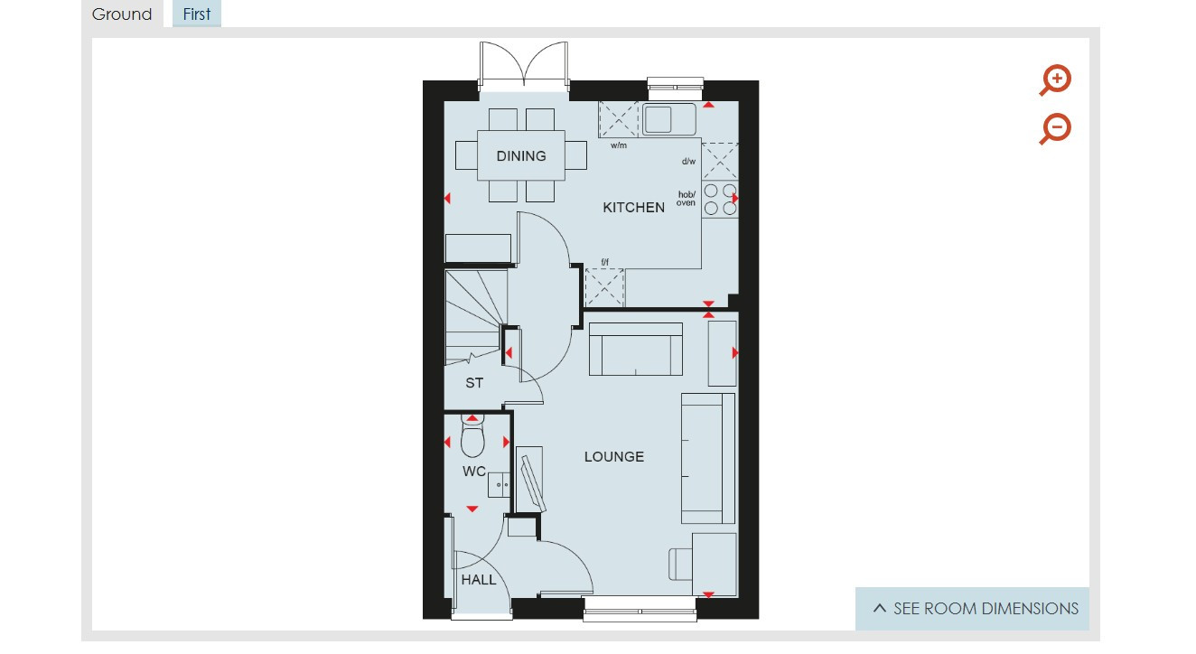 Downstairs features an open-plan kitchen/diner with french doors to the garden. there is also a spacious lounge and a cloakroom.