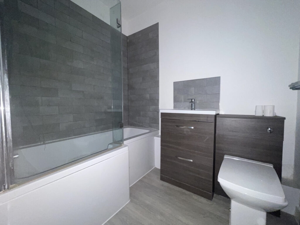 Situated on the first floor and currently vacant, the property is ready for immediate occupation. Internally, it features a spacious entrance hall leading into a bright and contemporary living space. The layout includes a modern three-piece bathroom suite, a fully fitted kitchen equipped with integrated appliances including a fridge, freezer, oven, and hob, along with a useful storage area within the kitchen.
