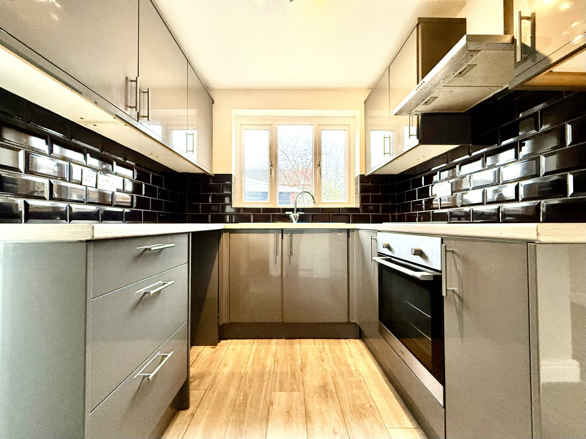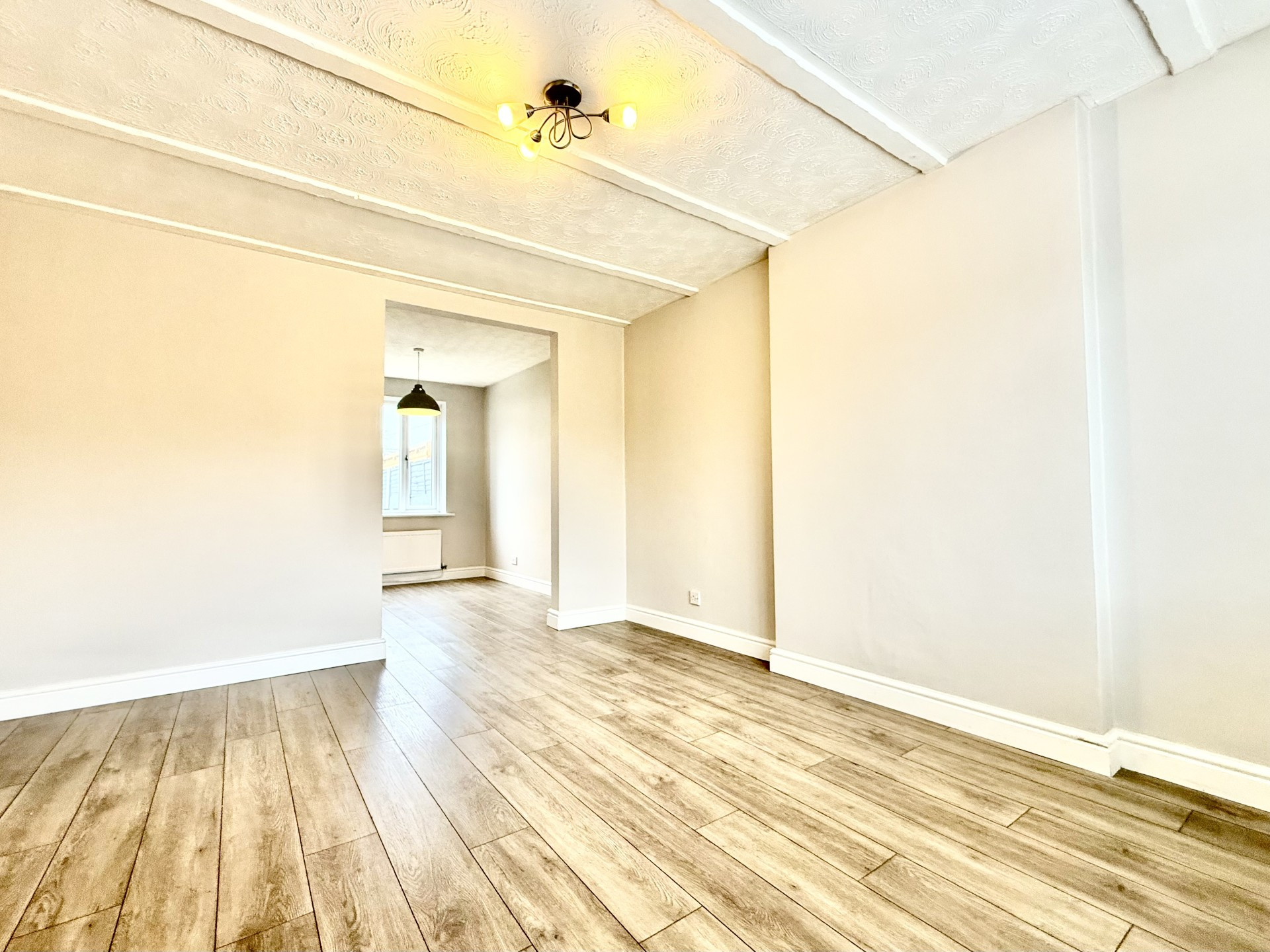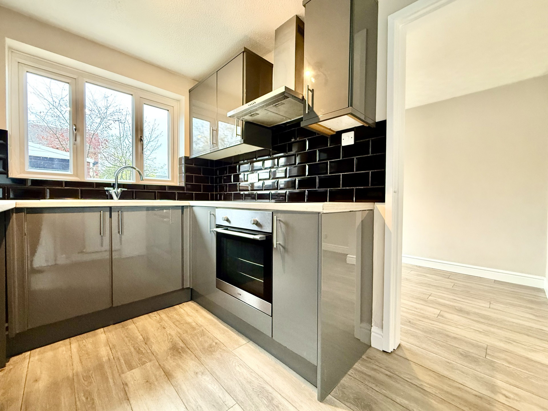The property benefits from a private garage and a thoughtfully designed rear garden, featuring a patio area and low-maintenance astro turf, ideal for outdoor relaxation and entertaining. Inside, the home opens into a welcoming reception area that leads through to a separate dining space and a compact, functional kitchen.