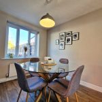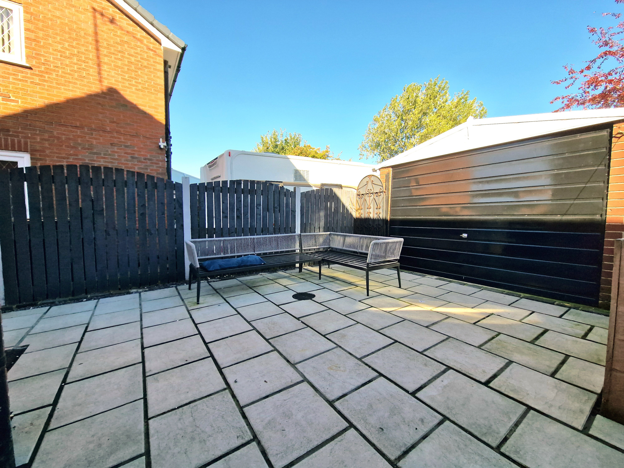 The property benefits from a private garage and a thoughtfully designed rear garden, featuring a patio area and low-maintenance astro turf, ideal for outdoor relaxation and entertaining. Inside, the home opens into a welcoming reception area that leads through to a separate dining space and a compact, functional kitchen.