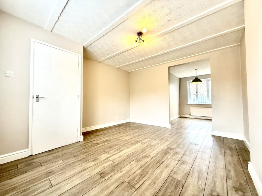 The property benefits from a private garage and a thoughtfully designed rear garden, featuring a patio area and low-maintenance astro turf, ideal for outdoor relaxation and entertaining. Inside, the home opens into a welcoming reception area that leads through to a separate dining space and a compact, functional kitchen.