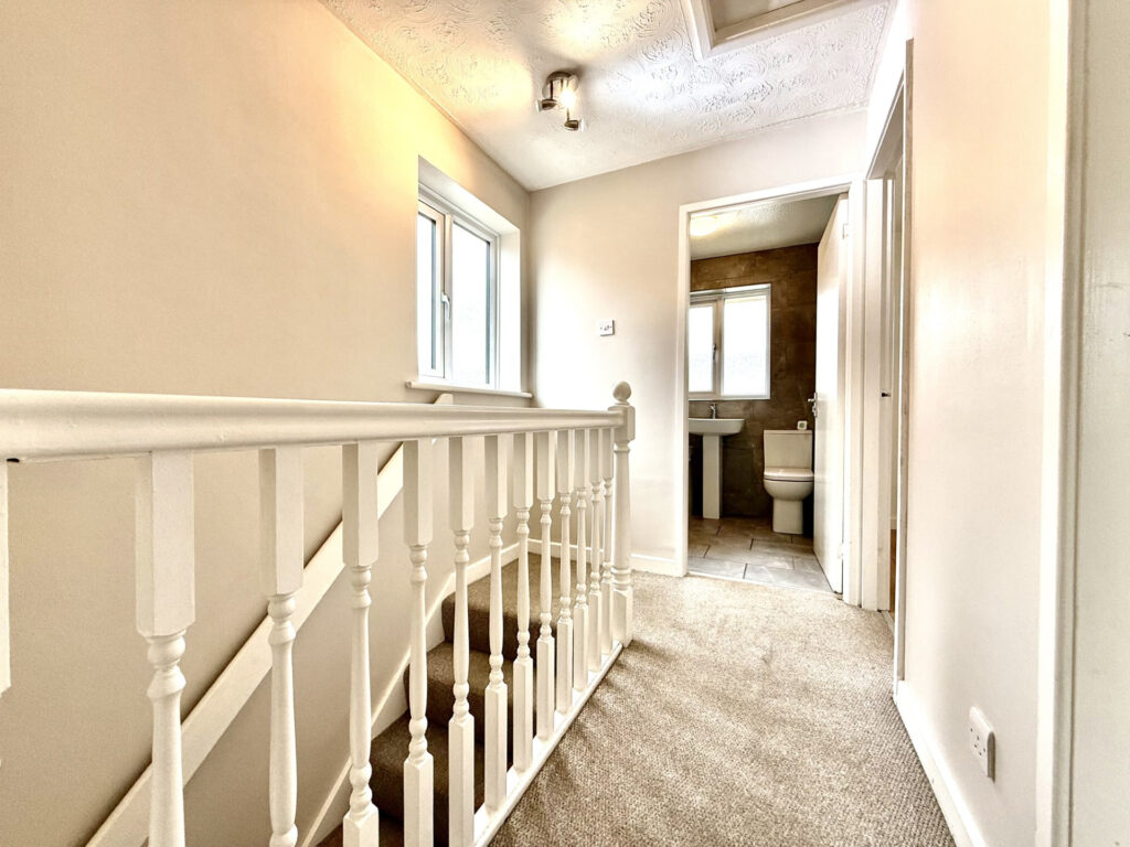 Upstairs, the property offers two spacious double bedrooms and a third single bedroom, providing flexible accommodation for families or those needing additional space for a home office or guest room.