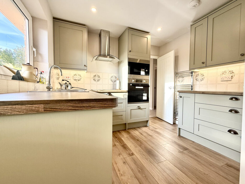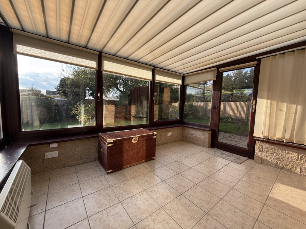 The property offers three well-proportioned bedrooms, two of which feature built-in wardrobes, providing ample storage space. The modern kitchen is well equipped and designed for practical everyday living. The bungalow also benefits from a generous reception room that opens into a dining area and a bright conservatory overlooking the rear garden.