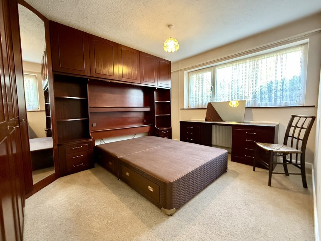 Externally, the property boasts a large rear garden, a pleasant front lawn, and a garage providing additional storage. Garden maintenance is included within the rent, as the landlord provides this service for the tenants’ convenience.